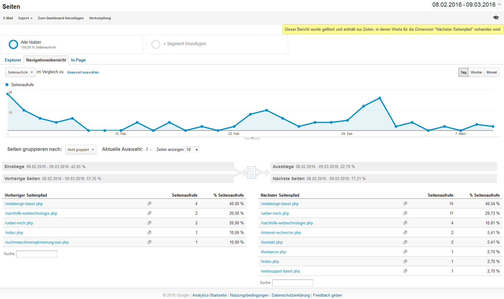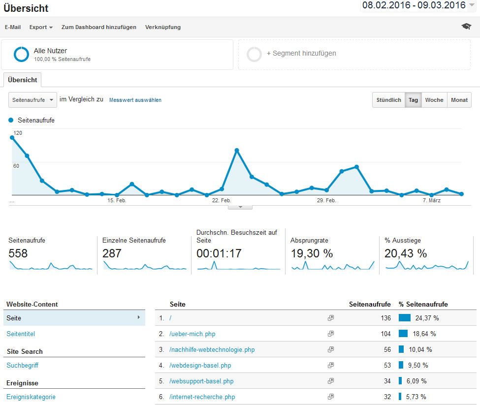 - Das Suchverhalten von Webbenutzer wird grafisch und tabellarisch dargestellt.