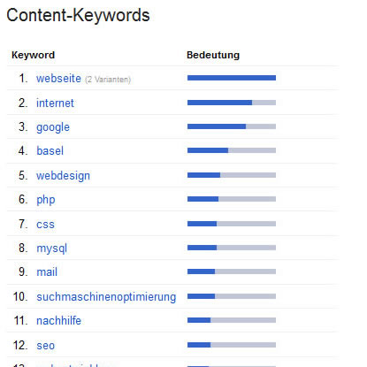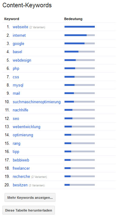 - Konkrete Suchanfragen werden ausgegeben. Suchbegriffe, welche effektiv auch von Webbenutzern eingegeben wurden und danach gesucht wurden.