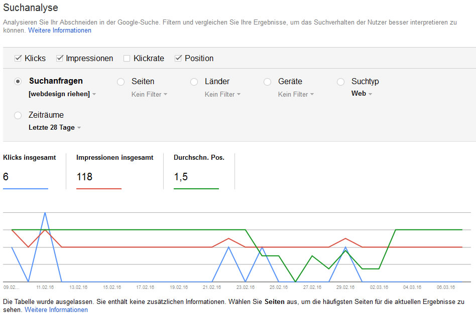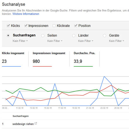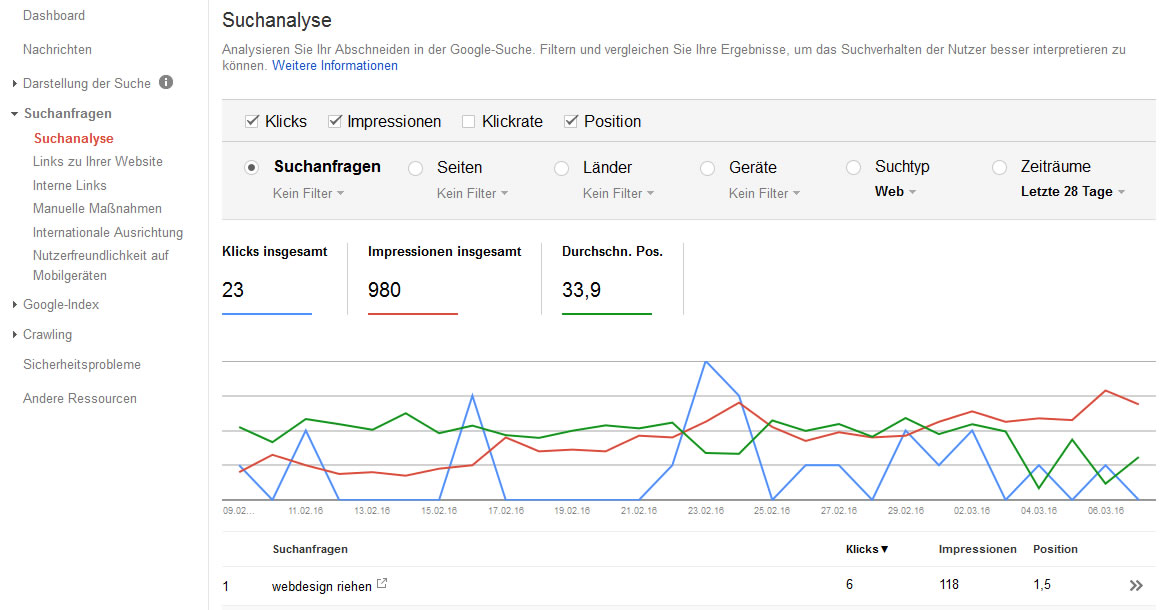 - Die Durchschnittspositionierung (Rang) bei Google.